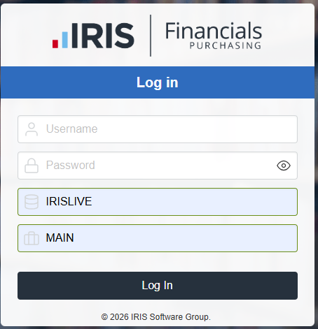 - Please use this link to access the online portal IRIS Financials Purchasing