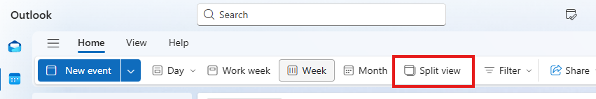 - On the top ribbon bar you will see a button “Split View”