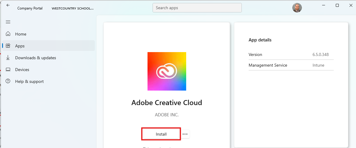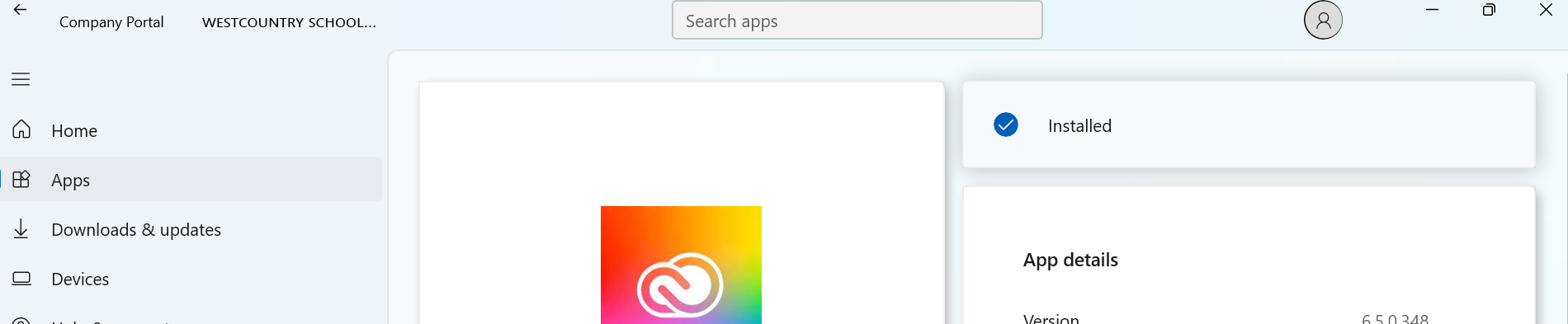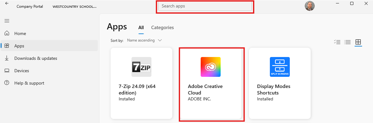 - Now click on the Adobe Creative Cloud App, if you do not see this you may have to search for it. This can be done by typing Adobe in the top Search Bar.